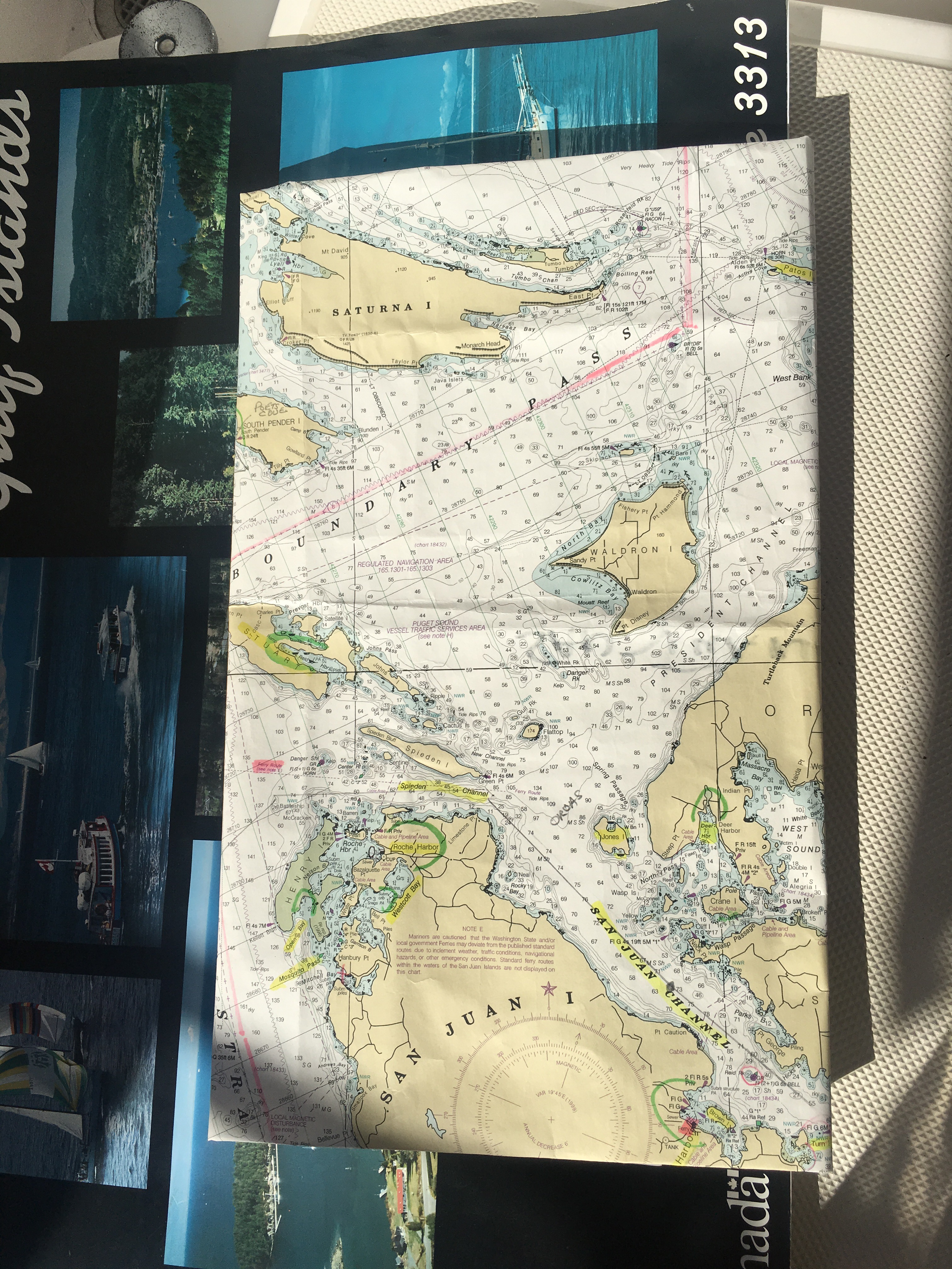additionally Waggoners Cruising Guide a must have for the Puget Sound and Canadian waters. I carry my parallel ruler and dividers as well. Honestly I enjoy along with Ensign Wilson plotting my course the old fashioned way and correcting based on visual sights which are everywhere in the Islands but primarily buoy and channel markers.