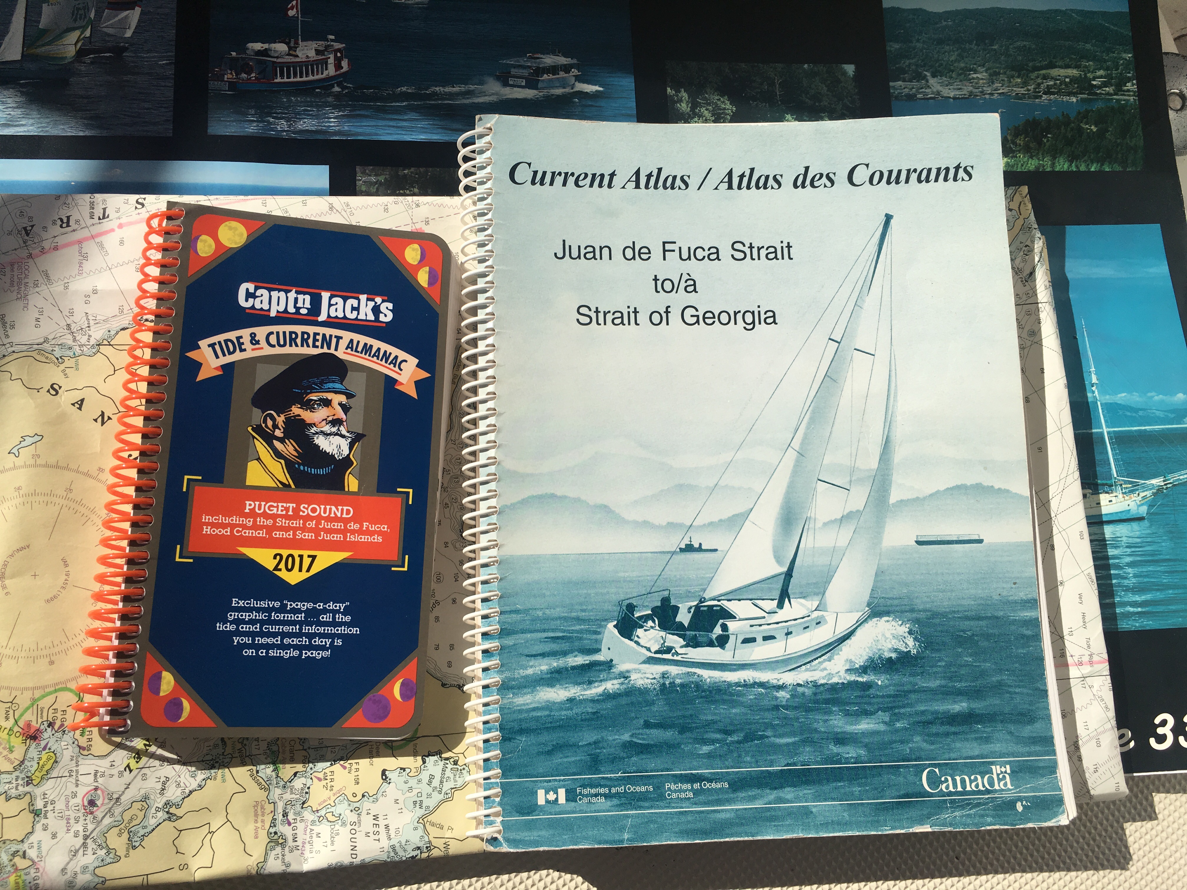 a word about navigation or nav. In addition to the awesome GPS Garmin chart plotter on board and radar we carry a lot of paper charts, tide and current books. Thanks to SV Ubiquity captain Brian Stipak and Leslie for the invaluable current Atlas for the Straits.