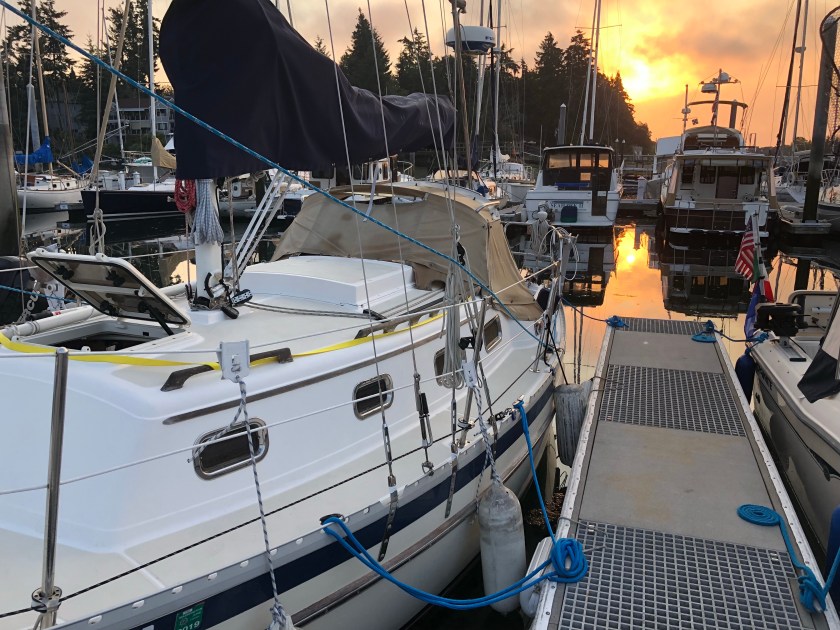 Thankful to be at homeport we stayed the night and cleaned up the boat the next day. So ended 28 days on board our Kestrel living in tight quarters, bumping our heads, rowing ashore for Wilson, and taking in the beauty of the Northwest waters. Finally we did see an Orca whale just off Fox Island and a number of humpbacks off Anderson Island all in the South Puget Sound a rarity. The whales escorted us home. 🐳.