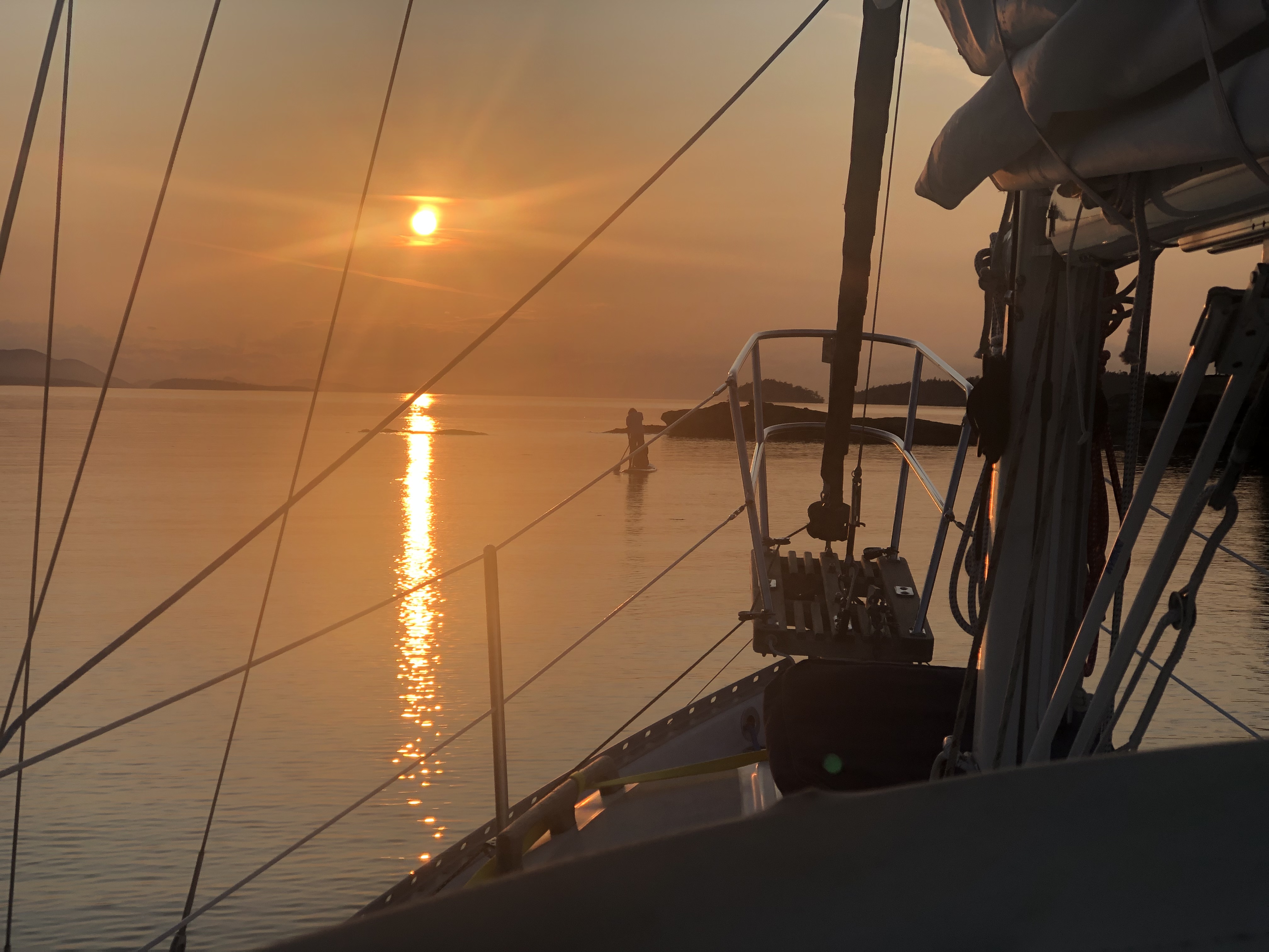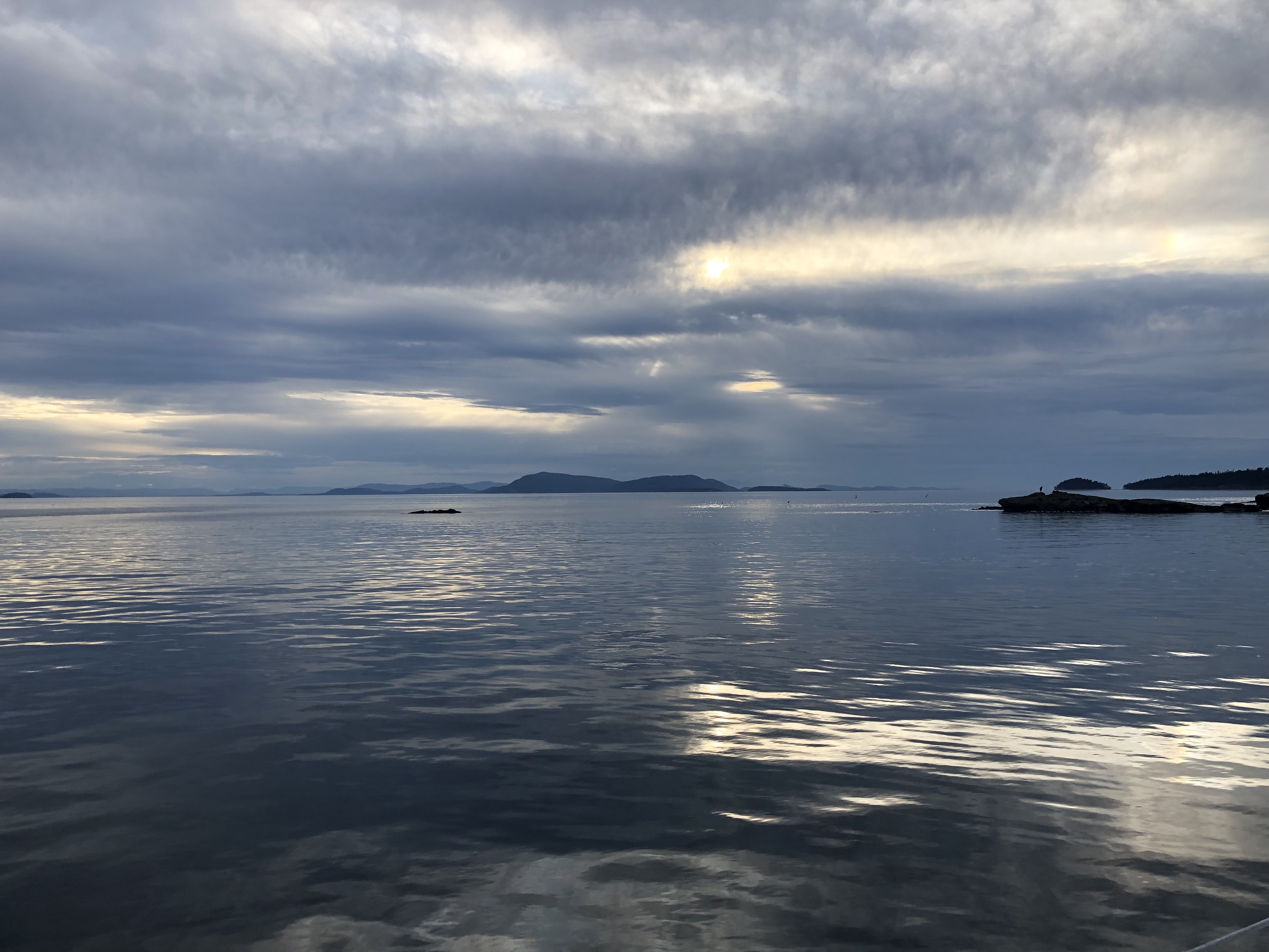 Motor/Sailed from Olympia a week ago putting into Gig Harbor, Eagle Harbor, Poulsbo and Ludlow. At 5.5 knots long distances are not within reach. So here we are in Port Townsend, Ann and I and Ensign Wilson preparing to cross the Straits of San Juan de Fuca for Friday Harbor. Tomorrow Monday 29th we have a weather window for early morning. So Voyage 3 really begins from here for our third season which will include a stop or two in Canada.